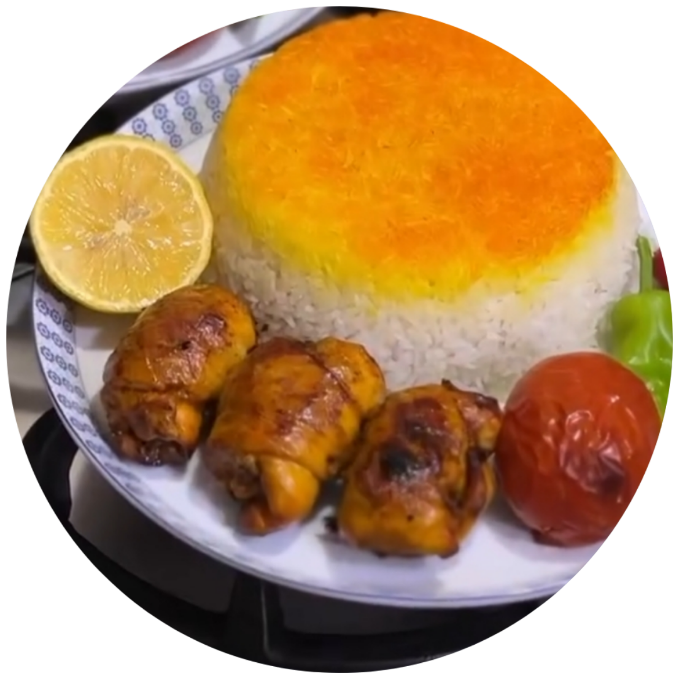 فيله مرغ مزه دار شده:زعفرون,پياز،روغن،آبليموترش و نمک و فلفل سیاه